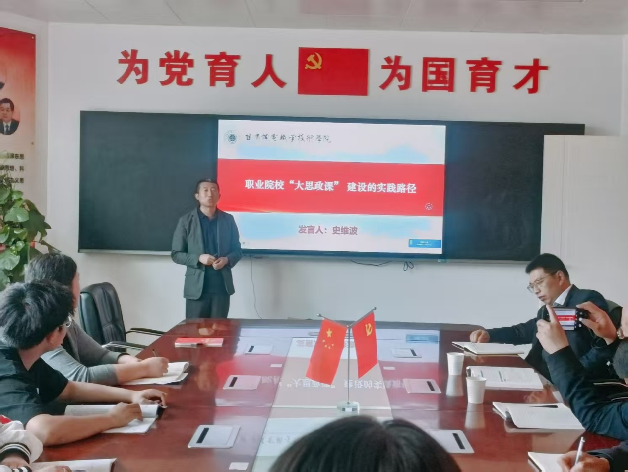 第一阶段,甘肃林业职业技术大学马克思主义学院党总支书记郭三龙教授主持会议,详细介绍了学院发展、师资队伍、人才培养、科研成果和思政课教学等基本情况,重点分享了以高质量党建引领高质量发展和省级思政课名师工作室的经验做法。接着,我校马克思主义学院院长、甘肃省思政课名师工作室主持人史维波作了《职业院校“大思政课”建设的实践路径》报告。