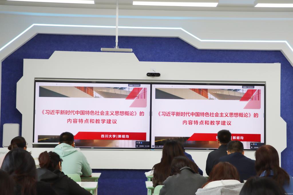 郭绍均以《习近平新时代中国特色社会主义思想概论》的内容特点和教学建议为重点,深入剖析了该教材的学理化与体系化特征,系统梳理了其逻辑脉络与整体架构。在此基础上,就该课程的教学工作提出了宝贵建议。他勉励全体思政课教师,要积极承担起新时代教育工作的使命与责任,以爱温暖学生、以爱感化学生、以爱培育学生,着力培养能够担当民族复兴大任的时代新人。