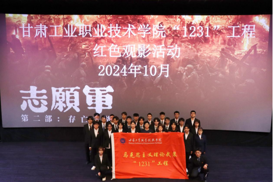 为热烈庆祝中华人民共和国成立75周年,进一步弘扬爱国精神,缅怀革命先烈、传承红色基因, 10月18日,思政课教师和“1231”工程学生团开展红色观影活动,组织师生走进影院观看了爱国主义电影《志愿军:存亡之战》。