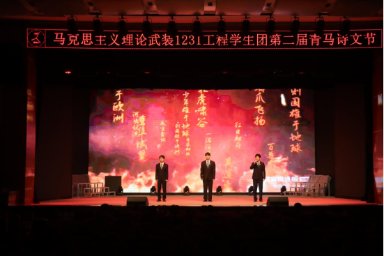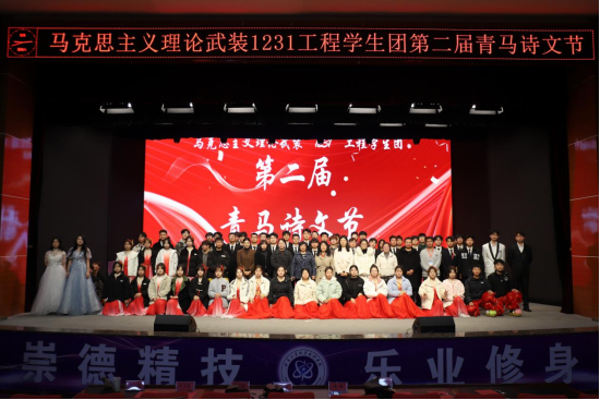 为弘扬红色文化,传承红色基因,营造和融竞进的校园文化氛围,展现工院学子和“1231”工程学生博雅灵动、积极向上的青春风貌,11月16日晚,由“1231”工程学生团主办的第二届“青马”诗文节活动在大学生活动中心举行,一场以爱国为主题的文化盛宴在此激情上演。本次活动邀请了马克思主义学院教师、校团委老师、全校800余名学生前来参与,现场气氛热烈,展现出浓厚的红色文化氛围。