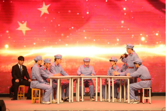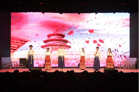 在主持人热情洋溢的欢迎词中,诗文节拉开了帷幕。“1231”工程学生们的诵读节目《我骄傲,我是中国人》率先登场点燃全场气氛。随后,九个学院和学生社团纷纷登台、尽显所长,同学们身着色彩鲜艳的服装,脸上洋溢着青春的朝气,用饱含深情的声音演绎着一篇篇感人至深的红色经典作品,激昂的诵读声和歌声如同冲锋的号角,传向远方,诉说着对祖国壮丽山河的赞美;灵动的舞姿恰似翩翩起舞的彩蝶,轻盈优美,蕴含着对祖国母亲深深的眷恋;话剧表演则如同一幅徐徐展开的画卷,生动而深刻地将那段历史呈现在观众眼前。