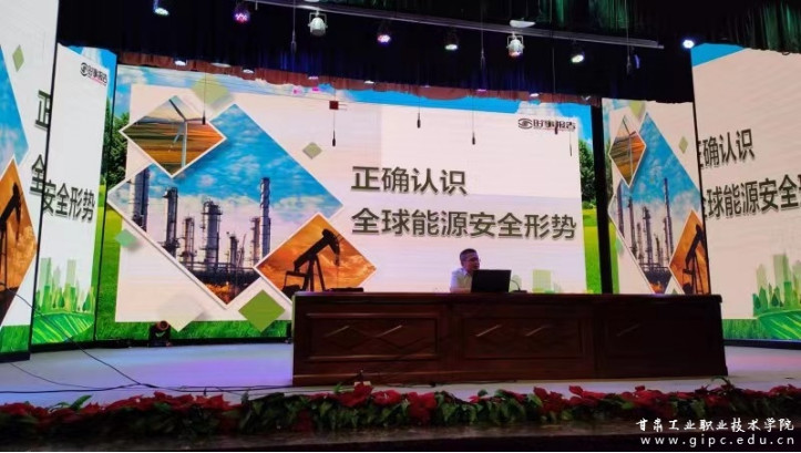 王利军通过生动的视频和形象的图片,辅以充分详实的数据,围绕“世界能源安全危机”、“维护世界能源安全”、“打赢我国能源安全主动战”三个维度展开讲授,向同学们阐释分析地区危机、单边限制措施等因素对国际能源供需平衡、能源资源产供链带来的影响,充分说明“能源的饭碗必须端在自己手里”的重要现实意义。
