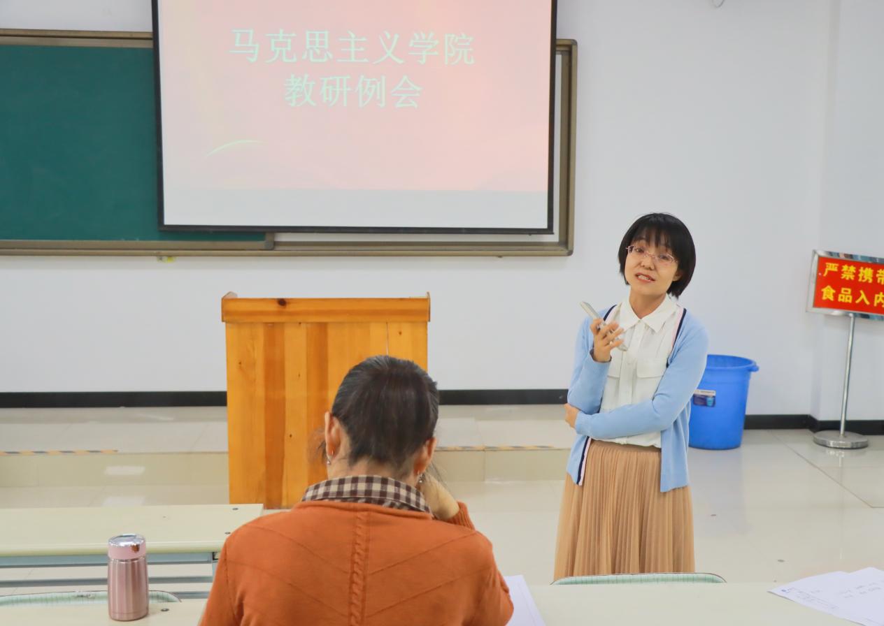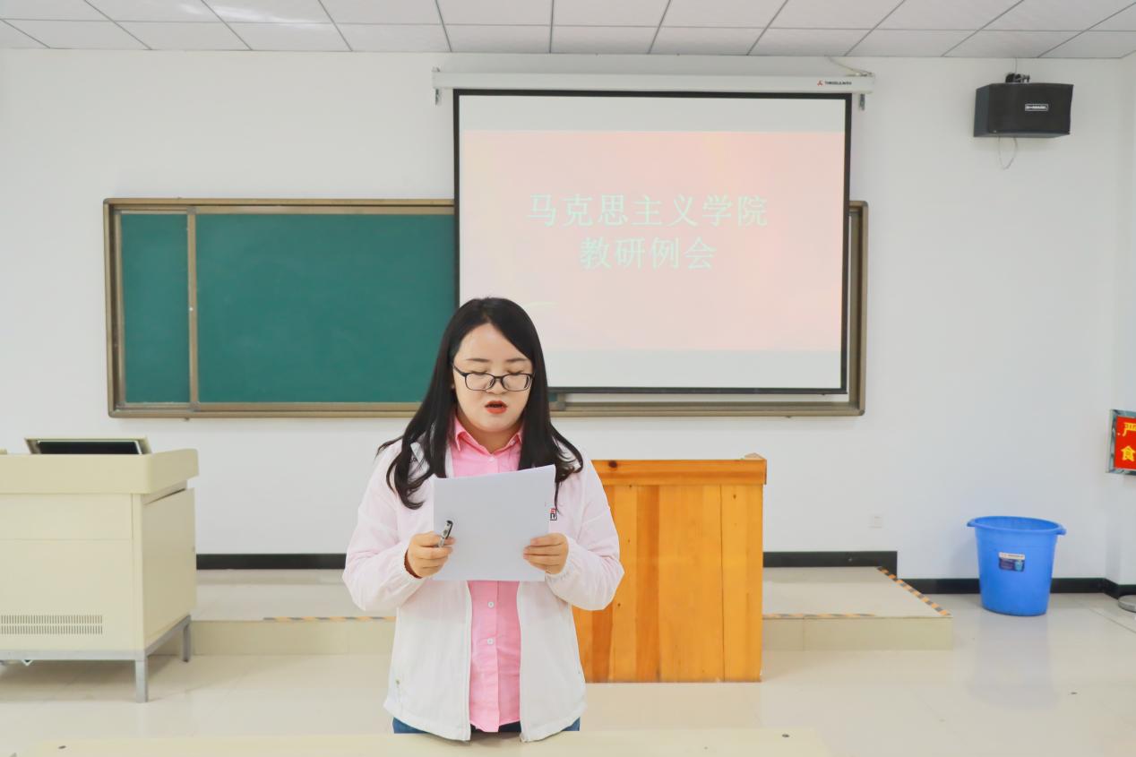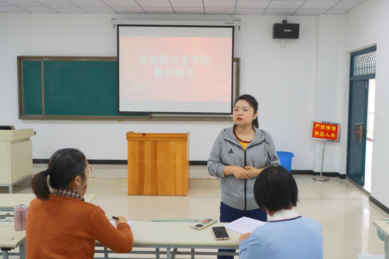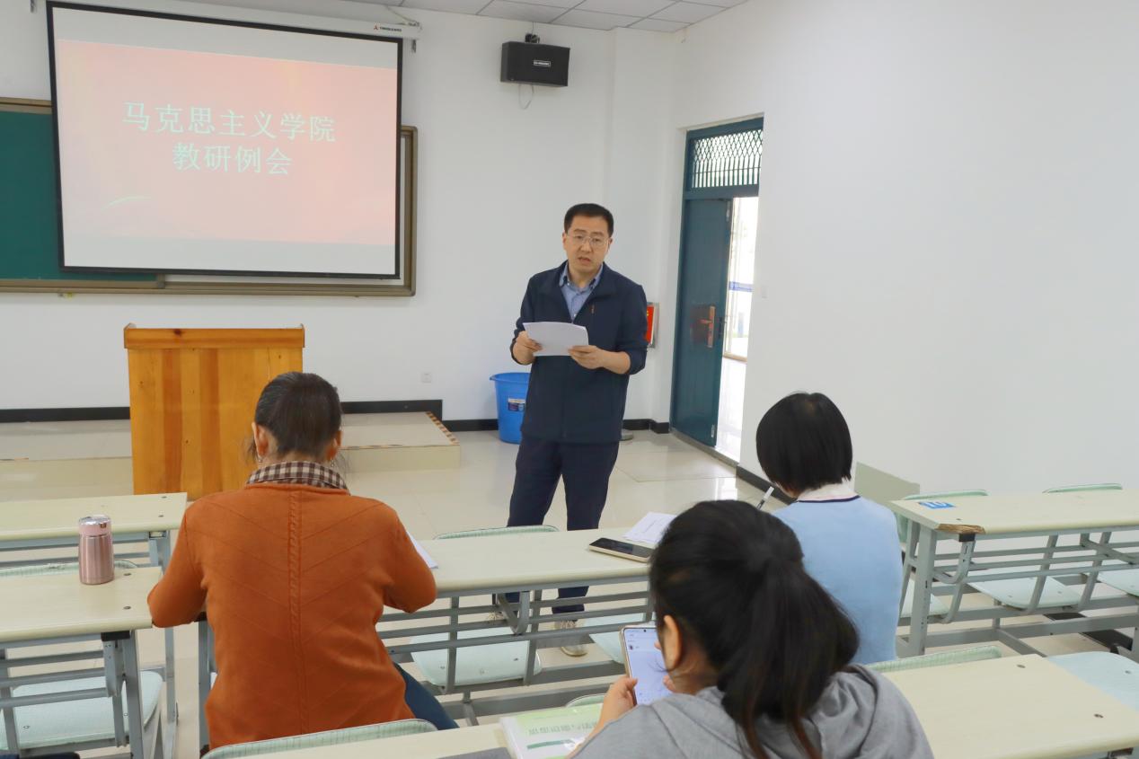 5月26日下午,马克思主义学院在实训楼阶梯教室召开教研例会,会议旨在贯彻落实学校“三抓三促”专项行动会议精神,在对上一阶段思政课调研中存在的问题和改进措施进行总结分享,进一步探索推进我校思政课教学改革,摸清学生思想状况和思政课学习情况,深入把握思想政治教育规律,提升我校思政课的思想性、理论性、针对性和亲和力。会议由马克思主义学院副院长李杨主持,全体任课教师参加。