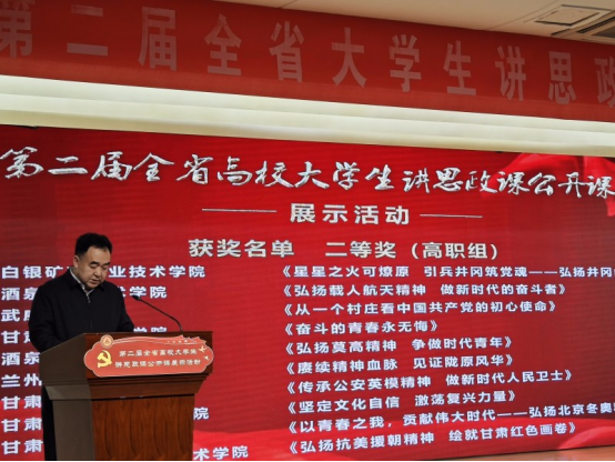 通过此次展示活动,更加激励了我校学子与时代共振、与祖国同行的热情,同时也引导广大学生热爱思政课、学好思政课,争做有理想、敢担当、能吃苦、肯奋斗的新时代好青年,把爱国情、强国志、报国行自觉融入全面建设社会主义现代化和幸福美好新甘肃的火热实践中。