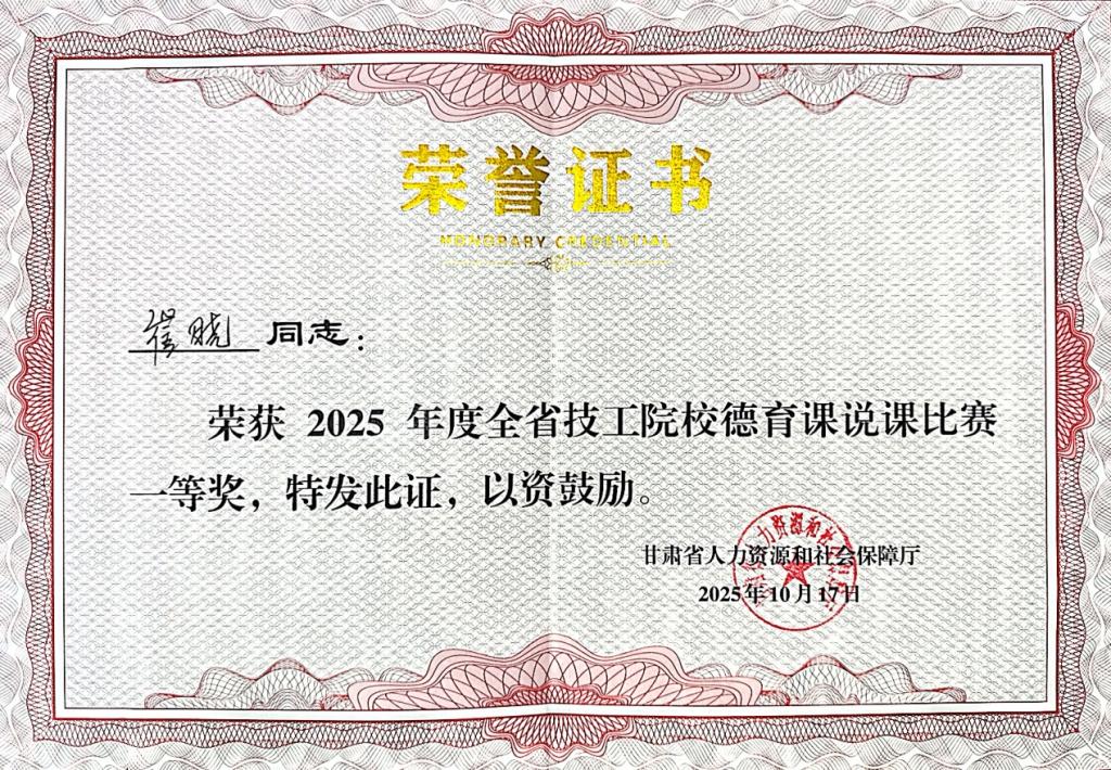 近日,在省人力资源和社会保障厅主办的全省技工院校德育课说课比赛活动中,我校教师崔晓凭借扎实的教学功底、创新的教学设计与深刻的德育理念,从众多参赛选手中脱颖而出,最终以总分第一的优异成绩荣获一等奖。