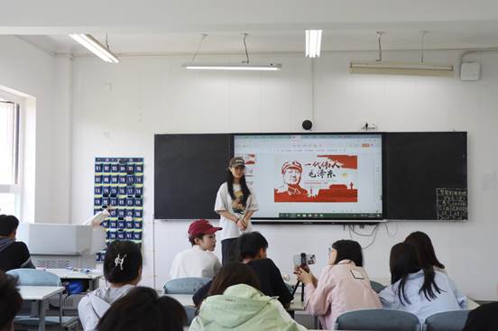 学生以小组为单位,以中国共产党百年奋斗史为主线,以革命先烈、道德楷模和时代楷模等先进人物为研究素材,结合时事热点、历史典故等,通过多媒体课件展示、成员讲解、情景剧扮演等方式在课堂上依次进行实践教学展示。