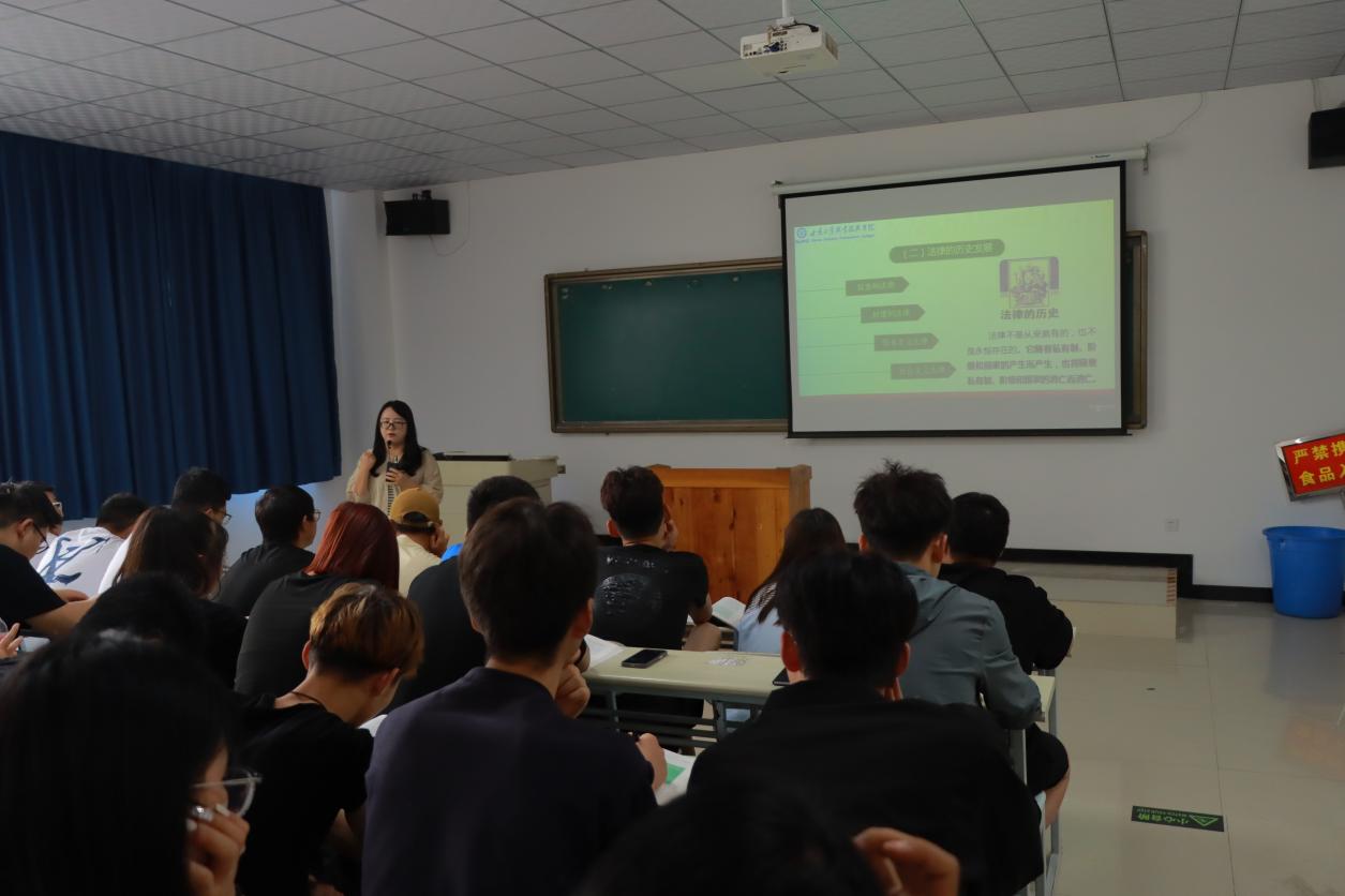 课上,尹习翠老师向同学们详细讲述了法律的历史发展过程,并在授课过程融入时事政治内容,内容充实,条理清晰,案例鲜活。课堂中尹习翠老师提出问题,学生分组讨论,课堂气氛活跃,教学效果良好。