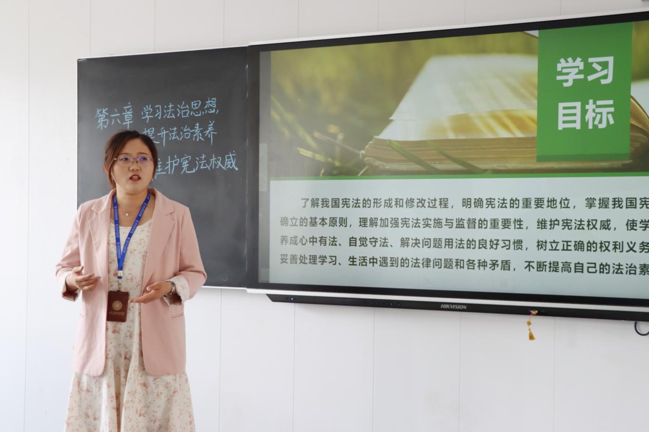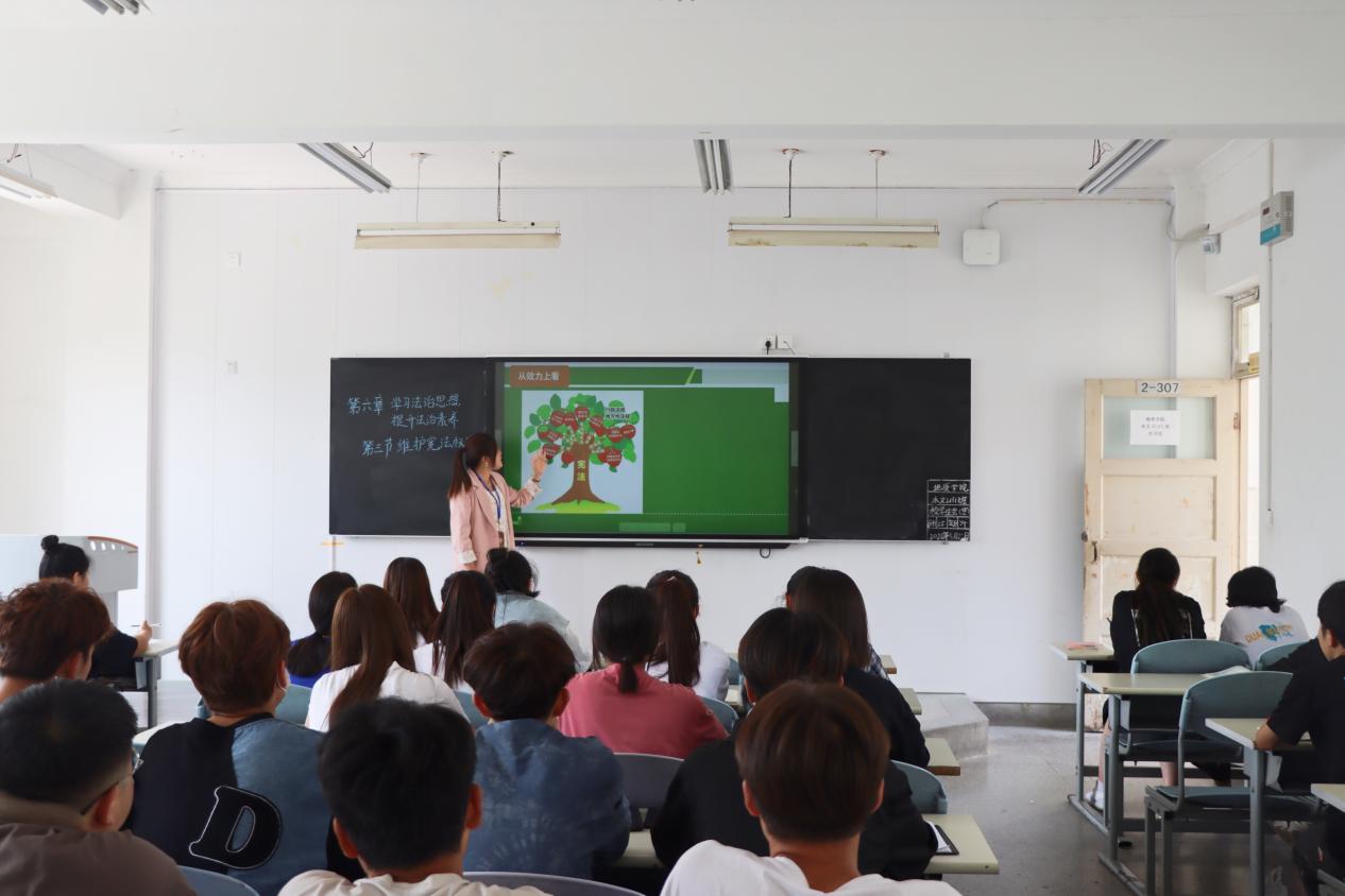 5月27日下午,李亚兰老师以“维护宪法权威”为主题为工艺2131班的同学们上了一堂生动的《思想道德与法治》公开课,党委副书记郭建忠赴现场观摩并指导教学。马克思主义学院常务副院长黄彬及部分思政课教师参加了听课。