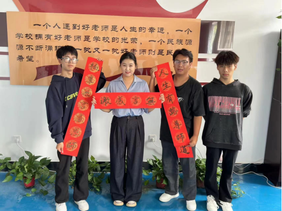 随后,学生代表们将这些充满谢意和敬意的对联及贺卡送到了每个学院的老师手中,并将对联张贴在学院办公室门口。饮其流者怀其源,学其成时念吾师。此次活动既向每一位传道授业解惑、甘于奉献的老师们献上了真挚的祝福,也营造了尊敬师长的良好校园氛围,加强了大学生思想道德教育。老师们收到礼物也纷纷表示,这份礼物是对他们工作的最大肯定和鼓励,他们将继续努力,为学生们的成长和发展贡献自己的力量。
