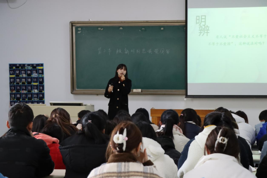为了切实开好思政课,进一步提升课堂质量,加强思政课教师之间的沟通、交流和相互学习,马克思主义学院于本学期第14周组织开展了为期一周的集体听课活动。11月28日上午,副院长王利军在实训大楼2号阶梯教室,听评马克思主义学院教师张琪的《思想道德与法治》课程。马克思主义学院教师陪同听课。
