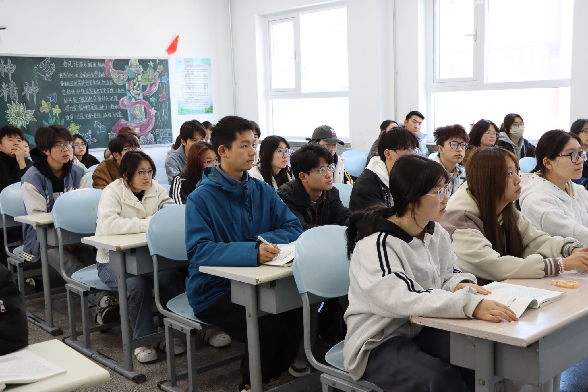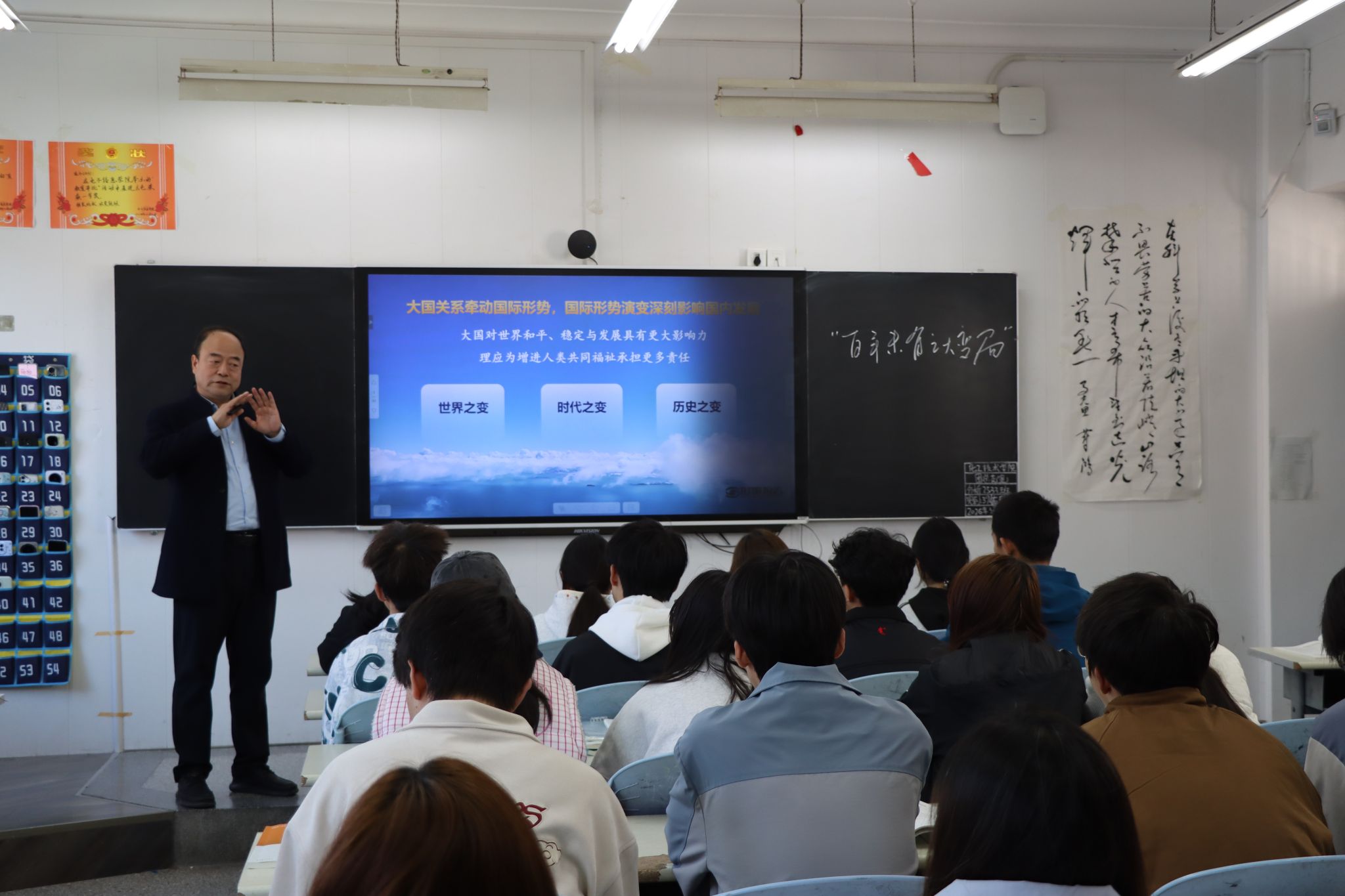 整堂课视野开阔、论述深刻,既有思想引领,又有情感共鸣。周晓明勉励同学们,要胸怀“国之大者”,在专业学习中厚植家国情怀,在时代浪潮中涵养国际视野,努力成长为有理想、敢担当、能吃苦、肯奋斗的新时代好青年。
