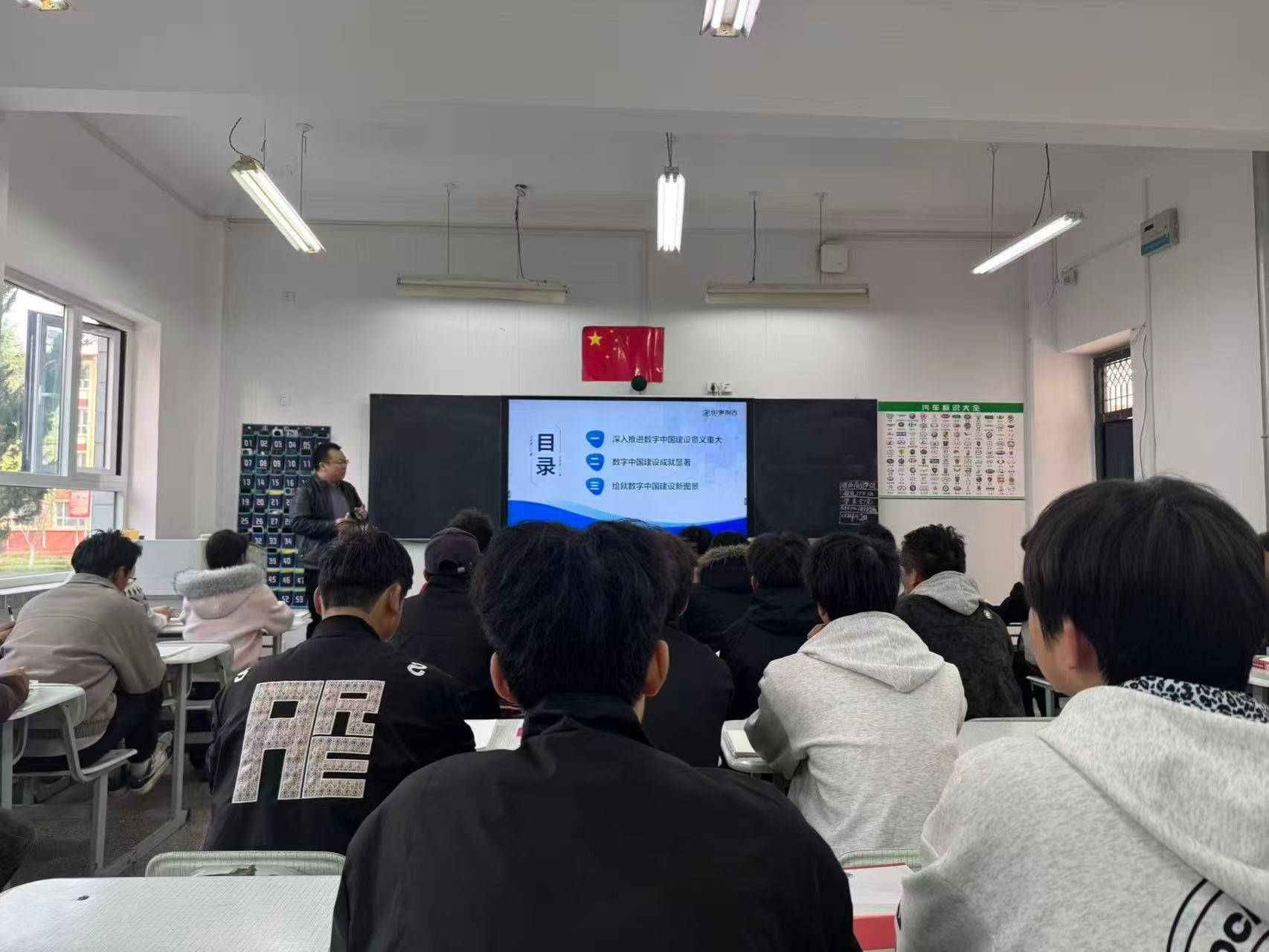在新能源2533班的形势与政策课堂上,张鸿飞以“乘‘数’而上 智启未来”为主题,为同学们带来了一堂兼具理论深度、时代温度与专业契合度的思政课。他以数字中国建设的战略意义为切入点,将理论知识与现实案例紧密结合,授课内容深入浅出、通俗易懂,极具针对性与感染力。