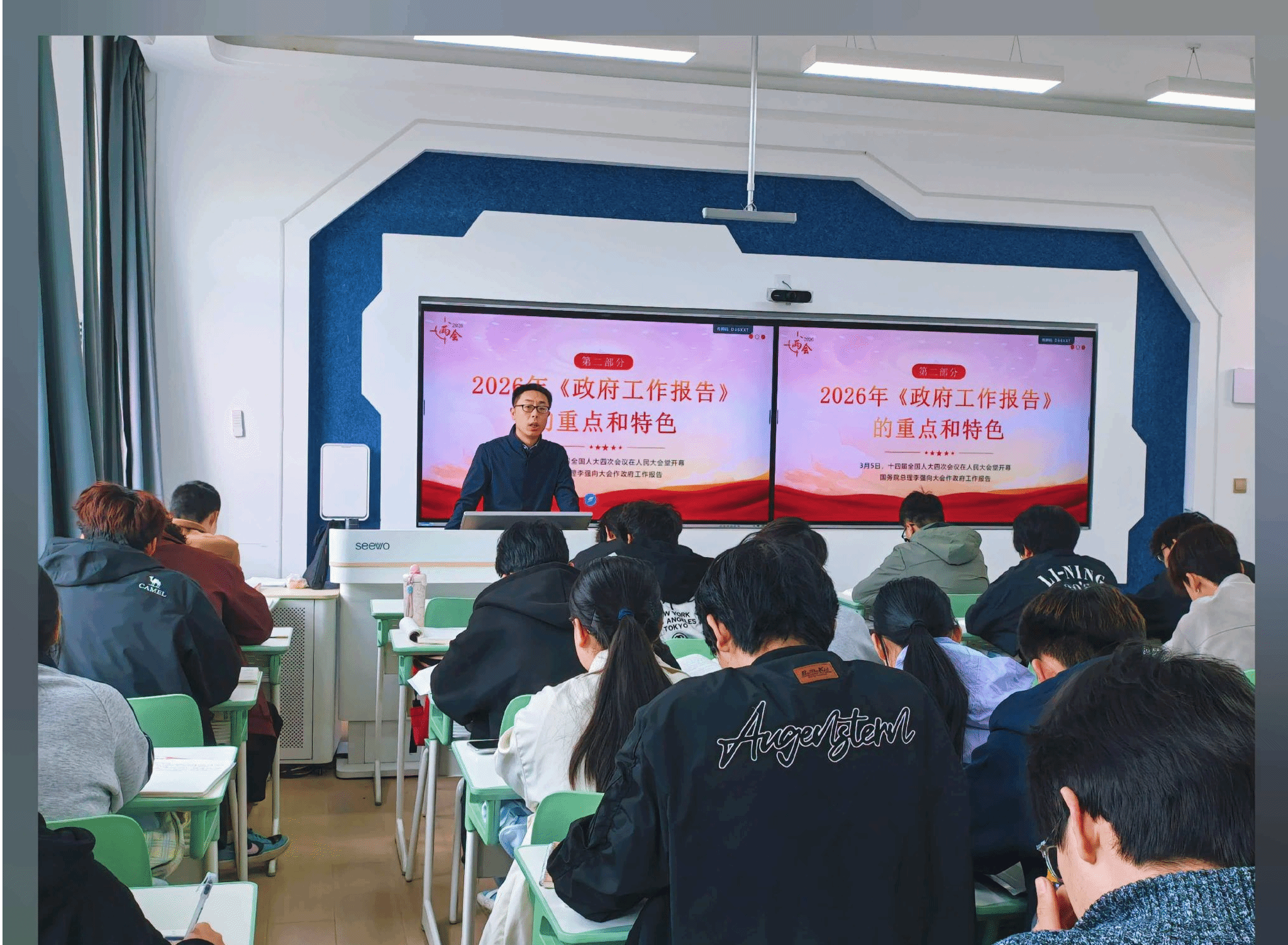 课堂氛围活跃、师生互动充分。同学们表示,此次学习加深了对国家发展蓝图的理解,明晰了新时代青年的责任与使命。今后将以两会精神为指引,勤学实干,全面提升综合素养。